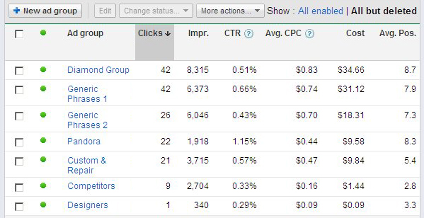 • Viewed by 3715 people • Clicked 21 times • $0.47 per click • 4 people registered online for custom jewelry • 19% Conversion Rate - 4 people walked into the store with proof in hand that AdWords worked!